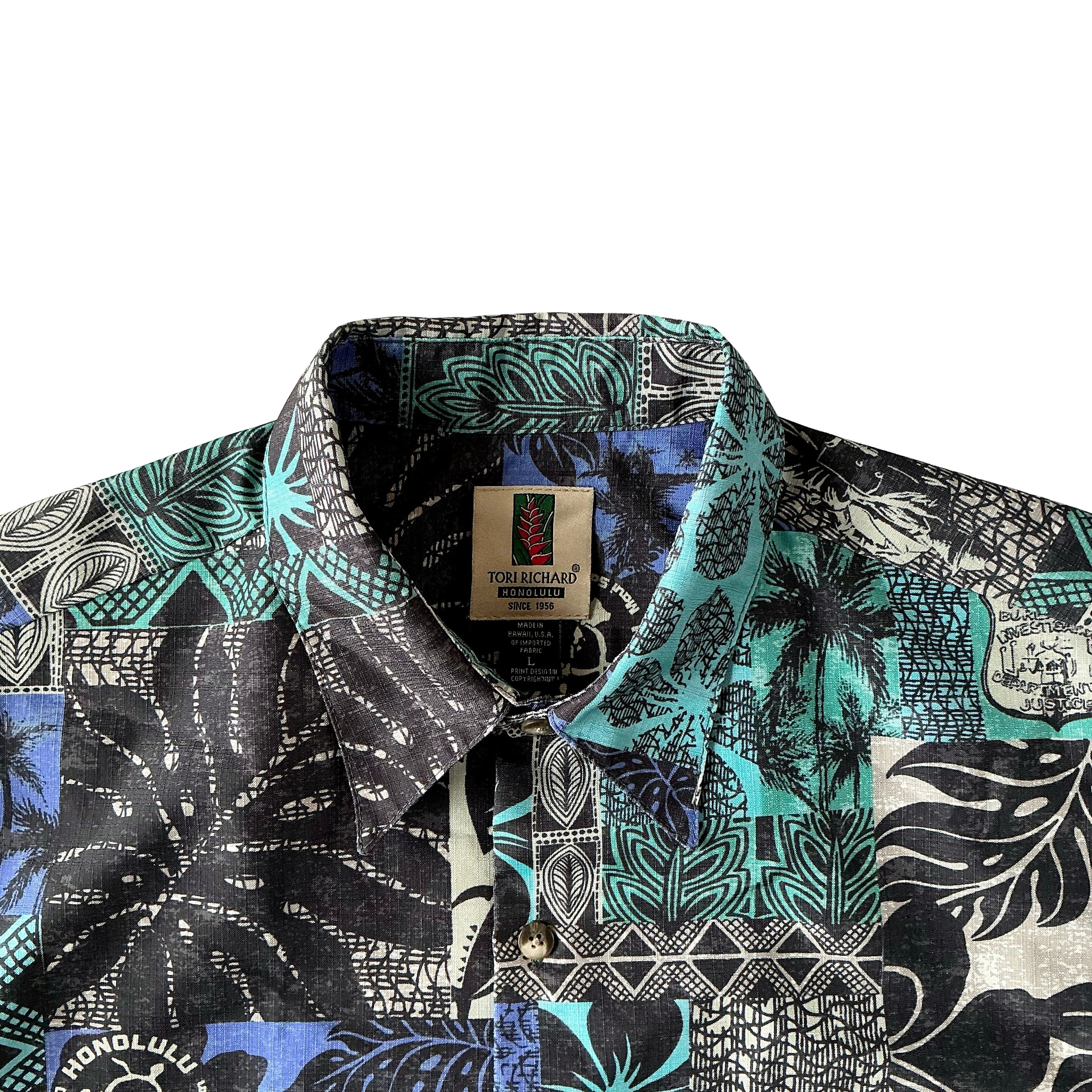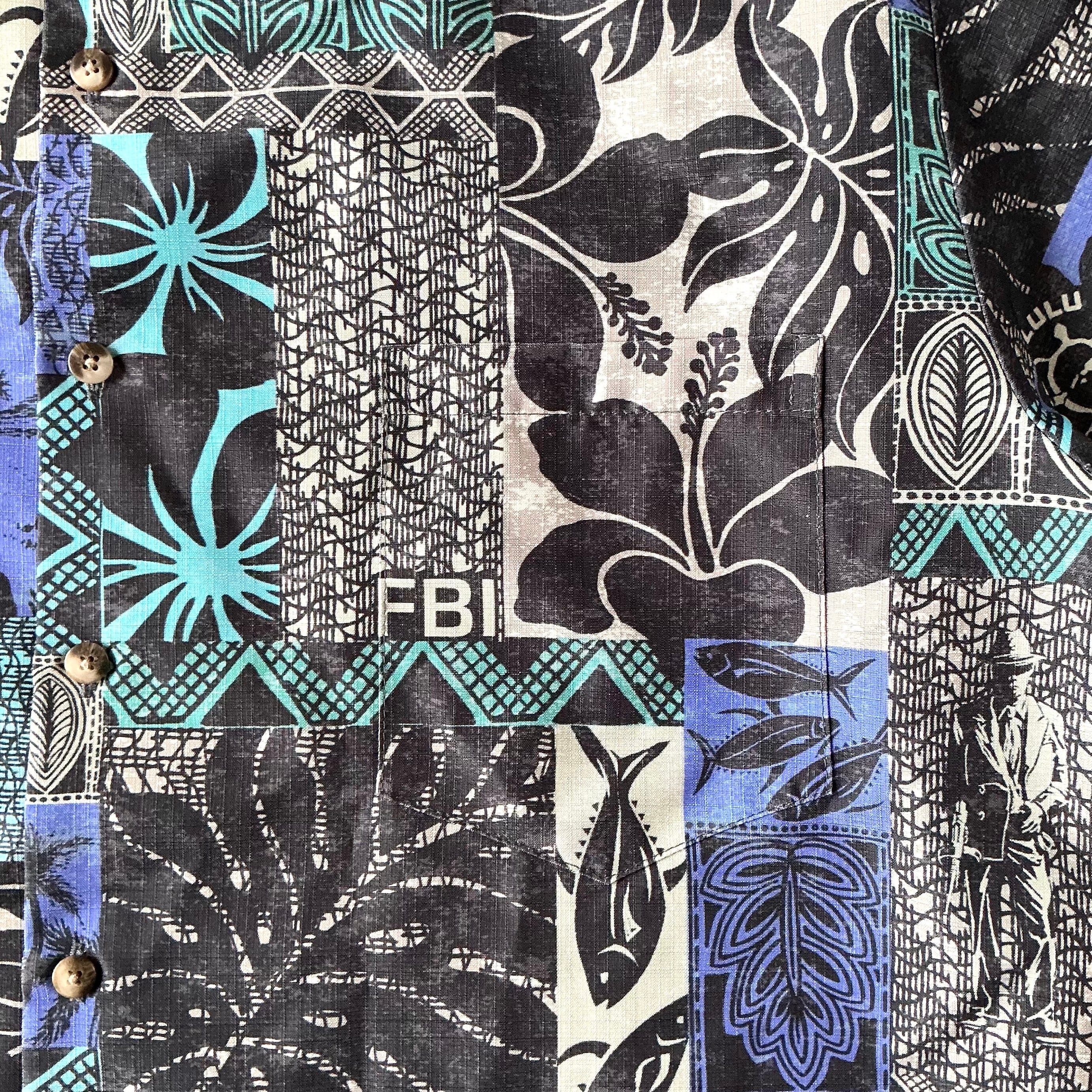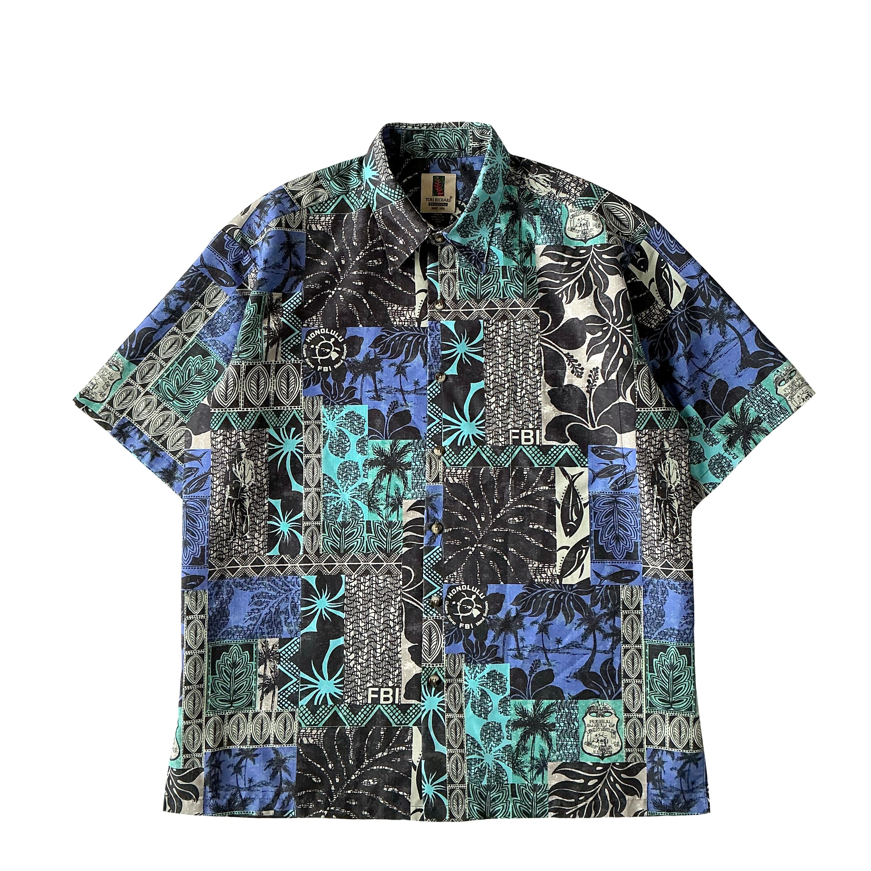 Tori Richard のFB I柄のUSEDアロハシャツです。