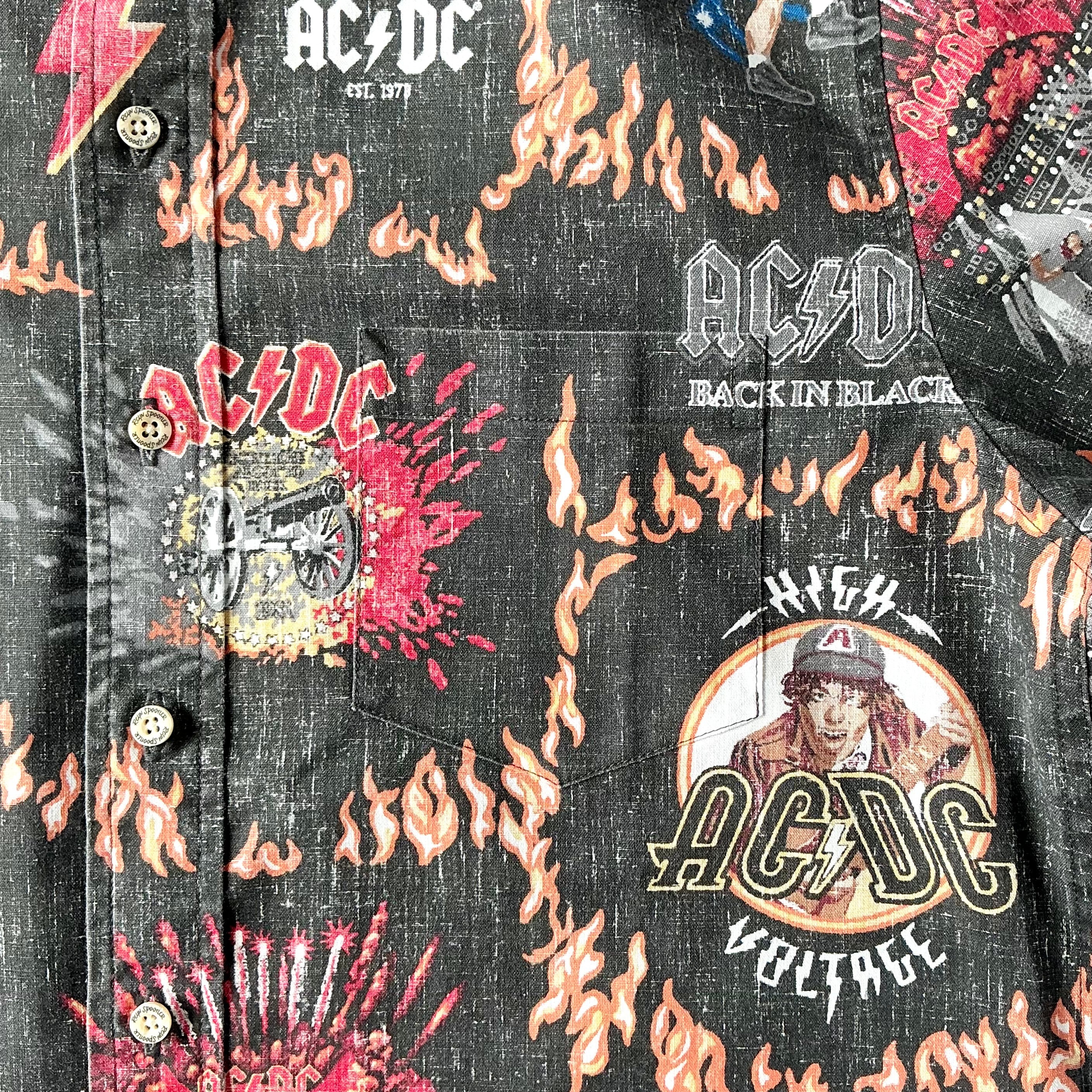 AC/DCがプリントされたアロハシャツです。